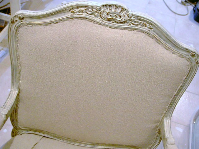 1. Remove upholstery and staples. Sand wood with 120 grit.
